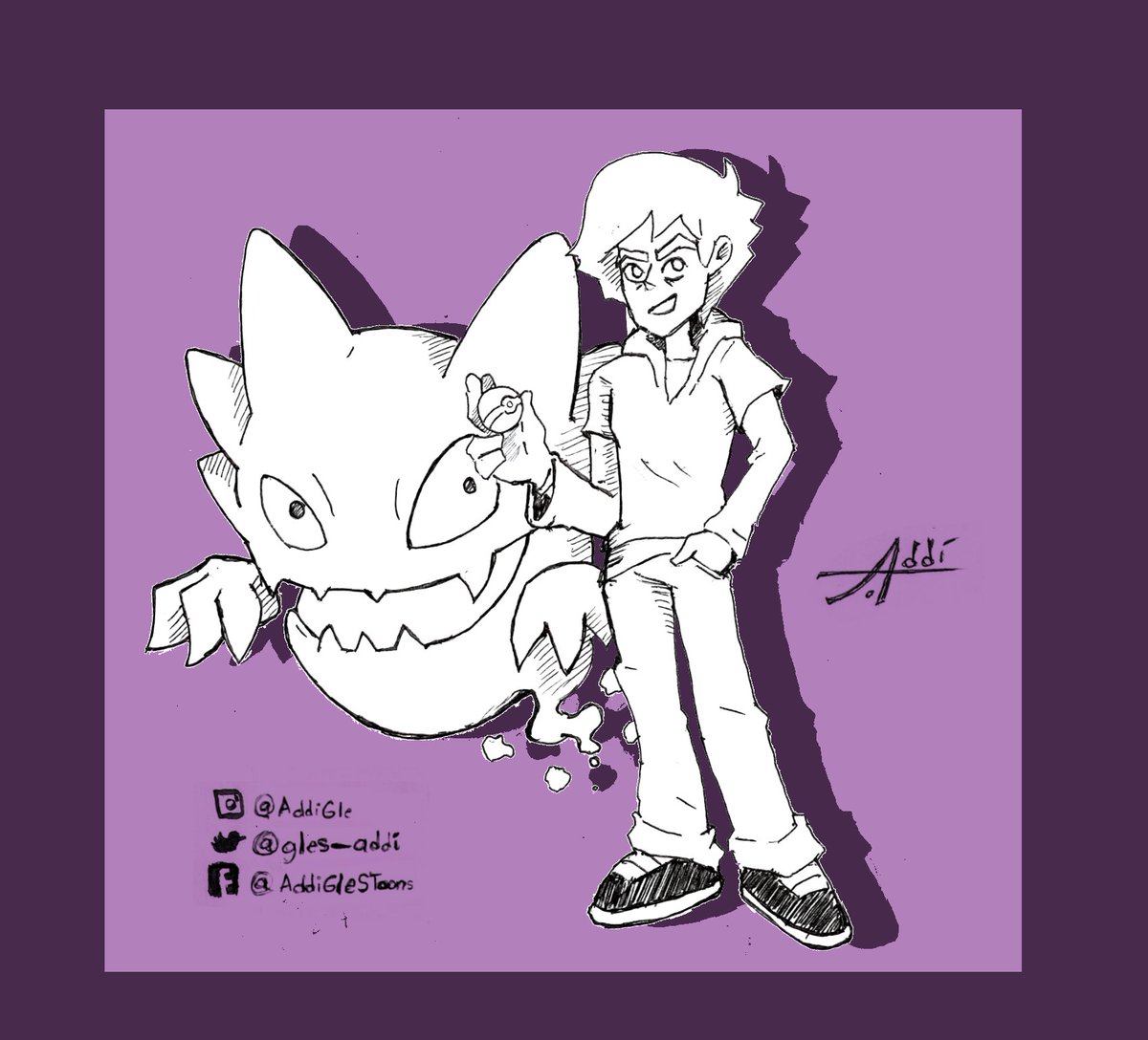 Reto Crewtober dia 13: Morado Dibuje a Addi como entrenador Pokémon. #inktober2021 #inktober #inktoberday13 #pokemon #haunter #art #oc #originalcharacter #pokeball #crewtober