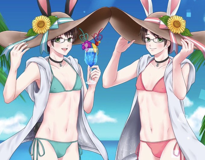 #ビキニの日 過去絵白黒うさむくん☺