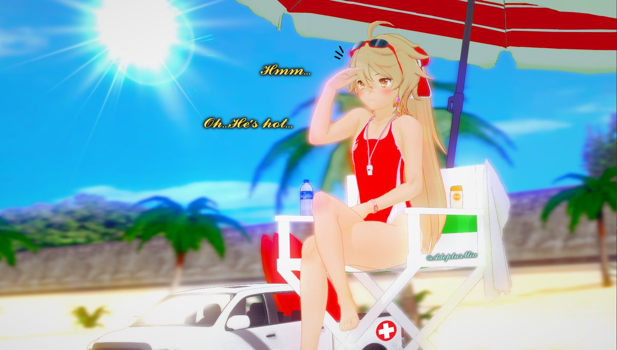 Aether got a summer job as a lifeguard ☀️🛟 Who is he looking at? 👀 #aether #GenshinImpact #空 #genshinimpactfanart #fanart