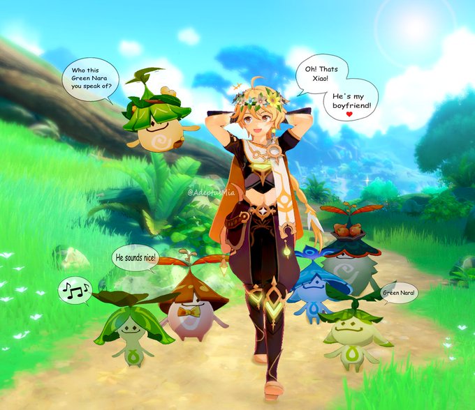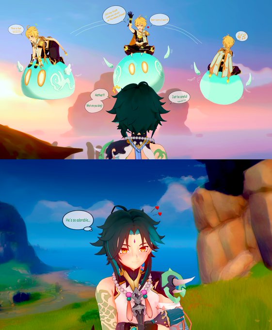 These two fit this dynamic perfectly 💚💛 #rkgk #xiaoaether #xiaother #xiaoae #魈空 Aether is carefree and adorable Xiao: Softly smiles at Aether ~ Aether completely unaware ~ ~based on ship dynamic in the thread below by @tishtishart 💕 ~ ⬇️ twitter.com/tishtishart/…