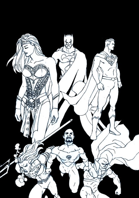 Justice League Mortal inked #Inktober2019 #jlmcompetition #justiceleague #batman #wonderwoman #martianmanhunter #superman #aquaman #FANART