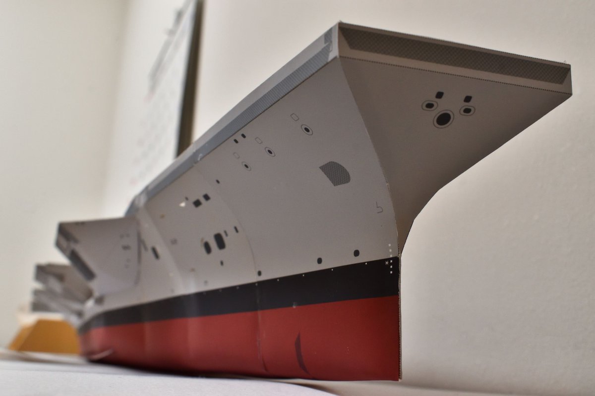 ジェラルド・R・フォードの船尾部分完成しました!! とはいっても歪みとかが結構多いです(汗 明日にはマット紙も届きそうなのでもう一度作り直そうと思います。 #ペーパークラフト #ジェラルド・R・フォード #紙模型工房