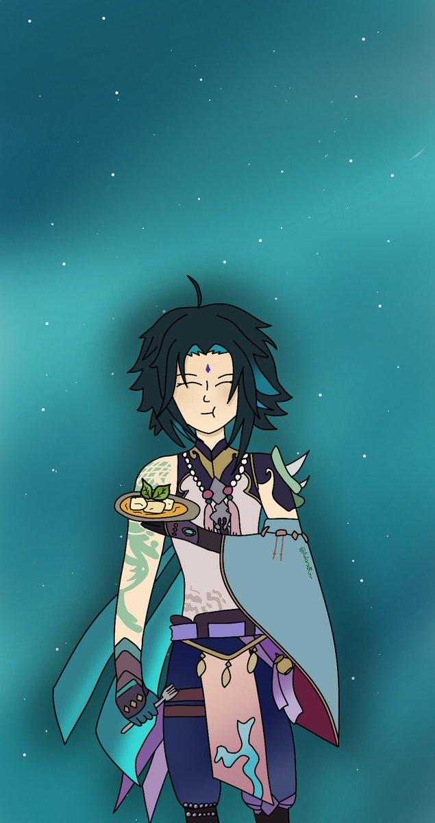 since his banner is coming out today i wanted to finish this today 🥰 he just loves almond tofu 😋 #xiao #genshinimpactfanart