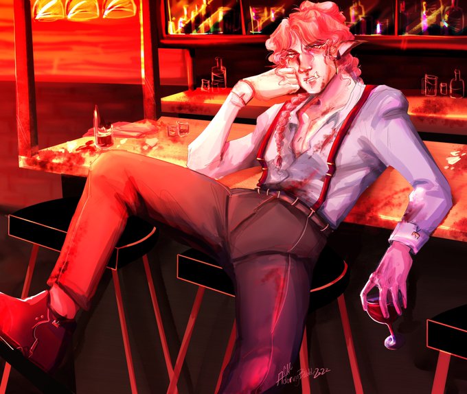 TW: Blood! - One Bullet Less, One Drink More, - art for my One Bullet Less Dsmp AU >:D #technobladefanart #technofanart