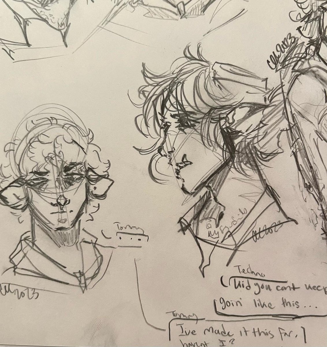 One Bullet Less dsmp AU sketches!! Sorry kinda messy <3 TW: Blood - #technobladefanart #tommyinnitfanart #bedrockbros