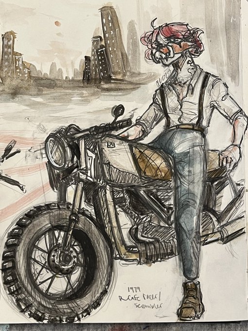 TECHNO MOTORCYCLE! -One Bullet Less Techno and his fancy motorcycle hehe #technobladefanart #technofanart