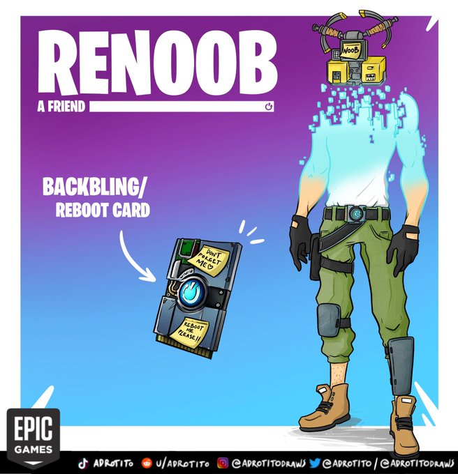 ReNoob (Skin concept) We all have a friend, whatever happens, he is always the first to die. Mention to your friend that he should wear this skin as default!😂😂 All your support is really appreciated♥️🔄 #Fortnite #FortniteArt