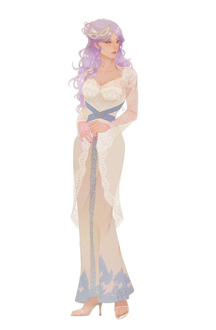 Imogen in her ball gown~ It was described as a kebaya dress, beige, with bell sleeves and a beautiful pattern, so this is what I came up with. #CriticalRole #CriticalRoleCampaign3 #criticalrolefanart #ImogenTemult #BellsHells