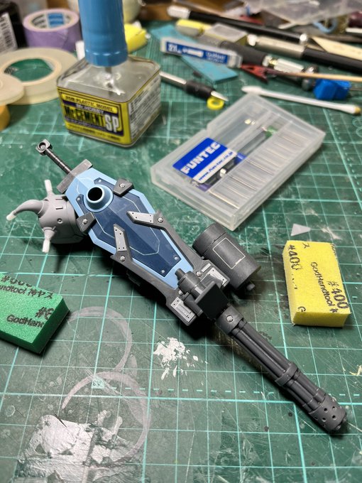 サザンクロス高機動グフカスタムHG 本日の作業終了🫡 ガトリングこんな感じになりました😅 #ガンプラの画像貼るとRTされると聞いて #ガンプラはどんな自由な発想で作ってもいいんだ #ガンプラ