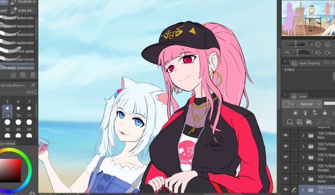 Update for the #hololiveEN piece I've been working on. Hopefully I can finish this in the next couple days #gawrt #callillust