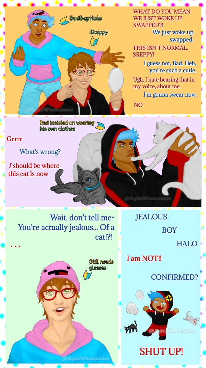 Hello Happytwt, how are you doing?? #skeppyfanart #badboyhalofanart #bbhfanart When your best bf is being goofy but you love them even more for that ❤️🤍💙 Comments and RTs are very appreciated ^^