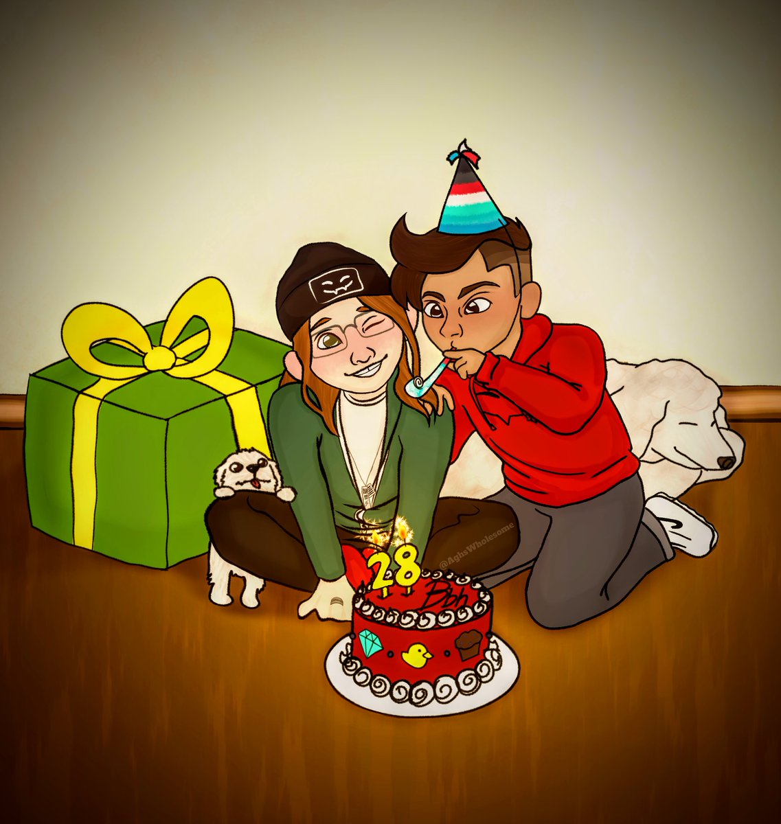 BIRTHDAY BOY!!! 🥳🥳🎉🎉🎉💖🥺 I love the idea of a domestic bday when they move in together, just the duo hanging out and having fun with the other's company Guess what his bf got as a present for him? (Spoiler, it's a pingspoofing) #badboyhalofanart #SkeppyFanArt #happytwt