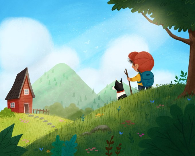 The best part of their adventures was always arriving back home…🏡⛰🌲🌿 #illustrationart #kidlitart #procreate #drawing #digitalart