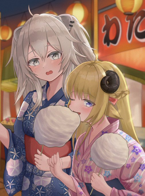 1182 9713 自分のわたがしが残ってるのに ぼたんちゃんのわたがしを食べちゃっても悪くないよねぇ? #ししらーと #つのまきあーと #ししわた 22/09/19 22:47