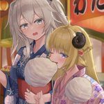 自分のわたがしが残ってるのに ぼたんちゃんのわたがしを食べちゃっても悪くないよねぇ? #ししらーと #つのまきあーと #ししわた