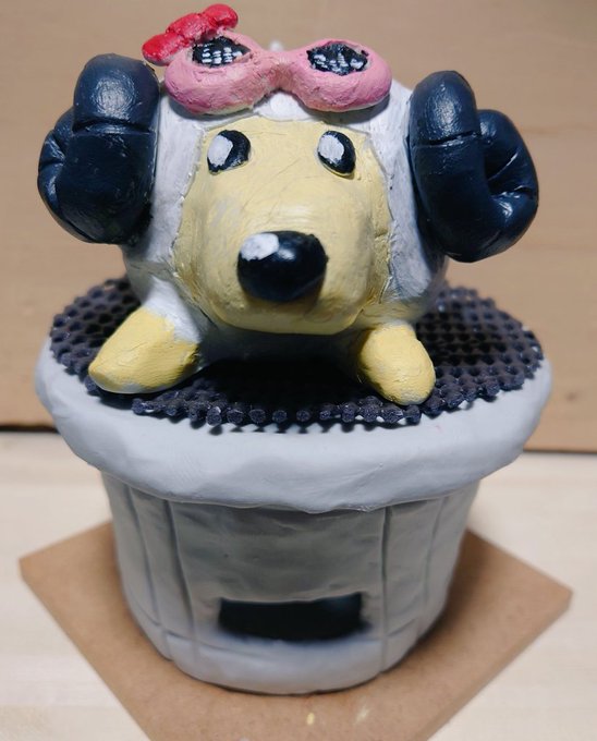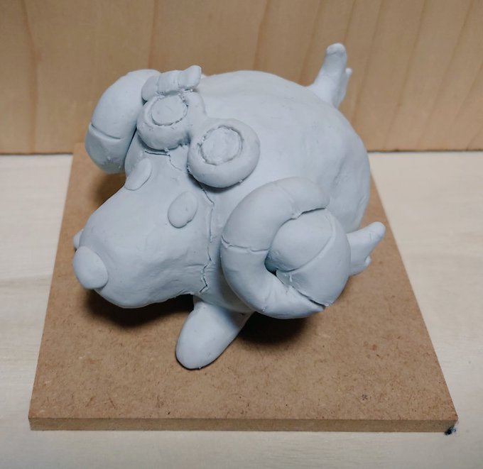 1 17 #つのまきあーと うーーん、鶏ぽんさんの「七輪に乗るわためいと」を自分なりに立体化したかったんだが••• 粘土足りなくて七輪はまた今度なんだけど••••完全に別物だぁ(‘◉⌓◉’)フワフワが表現できなくてネズミっぽい(´ . .̫ . `) サイズは8×8×7位の手乗りサイズ🐏🐑🐏💨💨 22/04/01 17:49