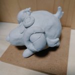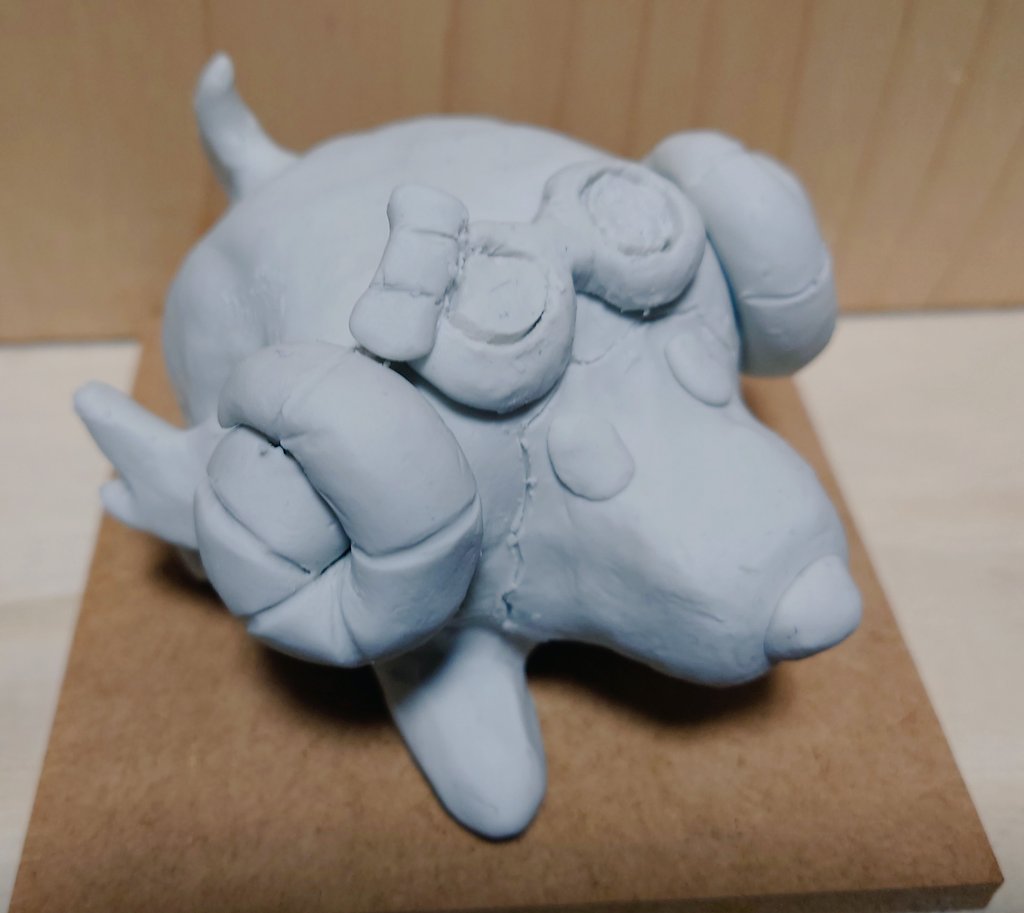 #つのまきあーと 前回捏ね回した鶏ぽんさん原案💪造形完全別物💦「七輪に乗るわためいと」の色塗り一回目完了👍👍 七輪がまだなんだけどねぇ(。ノω\。) 乾いたら重ね塗って落ち着いたらニス塗るかなぁ🤔 後ろ姿だけは鶏ぽんさんぽい??