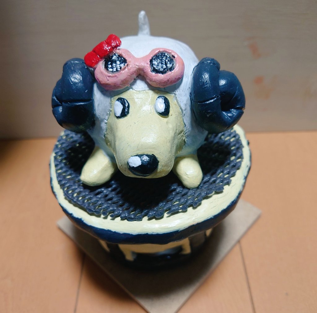 7 43 #つのまきあーと 前回捏ね回した鶏ぽんさん原案💪造形完全別物💦「七輪に乗るわためいと」の色塗り一回目完了👍👍 七輪がまだなんだけどねぇ(。ノω\。) 乾いたら重ね塗って落ち着いたらニス塗るかなぁ🤔 後ろ姿だけは鶏ぽんさんぽい?? 22/04/06 01:22