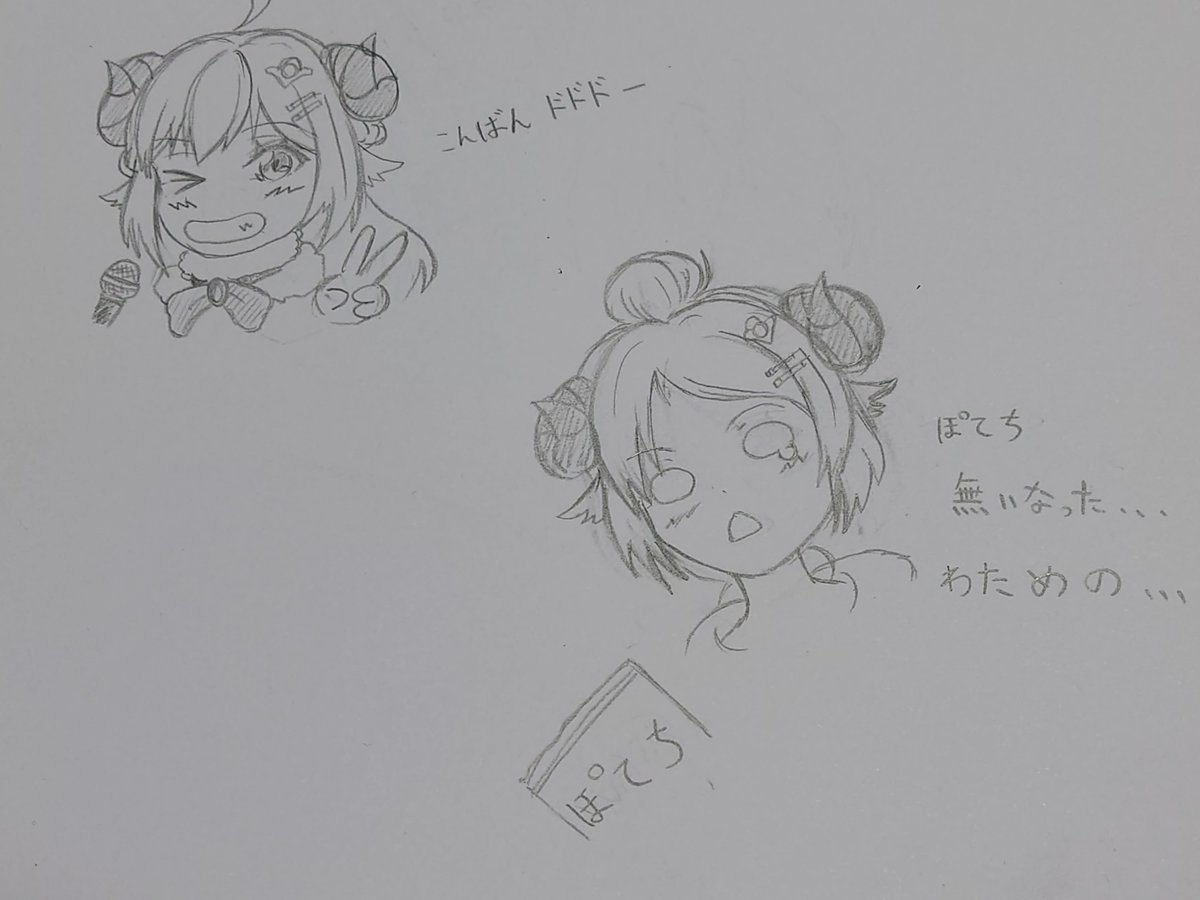 #つのまきあーと #LamyArt 楽しそうにポケカやってるわためぇ見てて思いつきで描いたドローわためぇ🃏 ラミィちゃんも描いてみたが似てない…要練習だなぁ❄️
