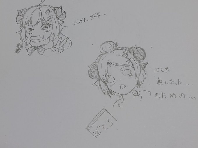 1 4 #つのまきあーと #LamyArt 楽しそうにポケカやってるわためぇ見てて思いつきで描いたドローわためぇ🃏 ラミィちゃんも描いてみたが似てない…要練習だなぁ❄️ 23/06/27 01:40