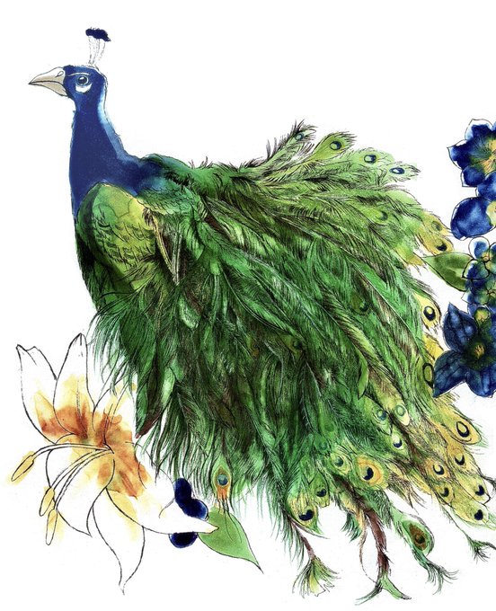 1 10 途中経過のクジャク🦚 #水彩イラスト 23/06/09 19:57