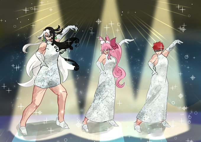 デアの出し物で「カルデアのミカタ」踊るブラックジョーク披露する道満とコヤンと完全にとばっちり受けた村正(セイバー) 道満のヒールは体重で折れた