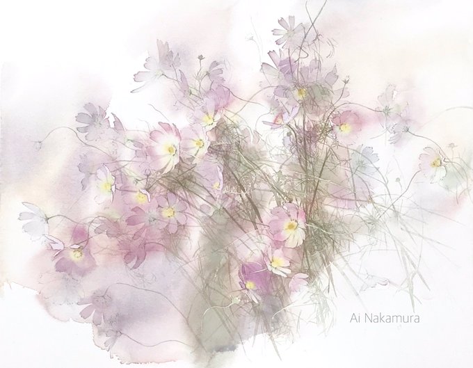 「晩秋」 #コスモス #透明水彩 #watercolorpainting