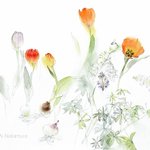 42 611 「チューリップと春の花」 #透明水彩 #花の水彩画 #シュミンケホラダム #watercolorpainting 23/01/27 10:21