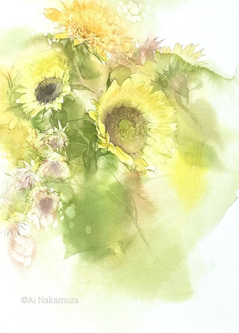 「夏の花」 #透明水彩 #ひまわり #watercolorpainting
