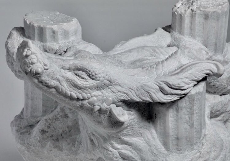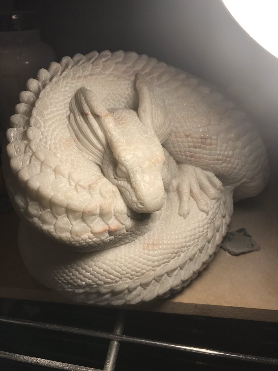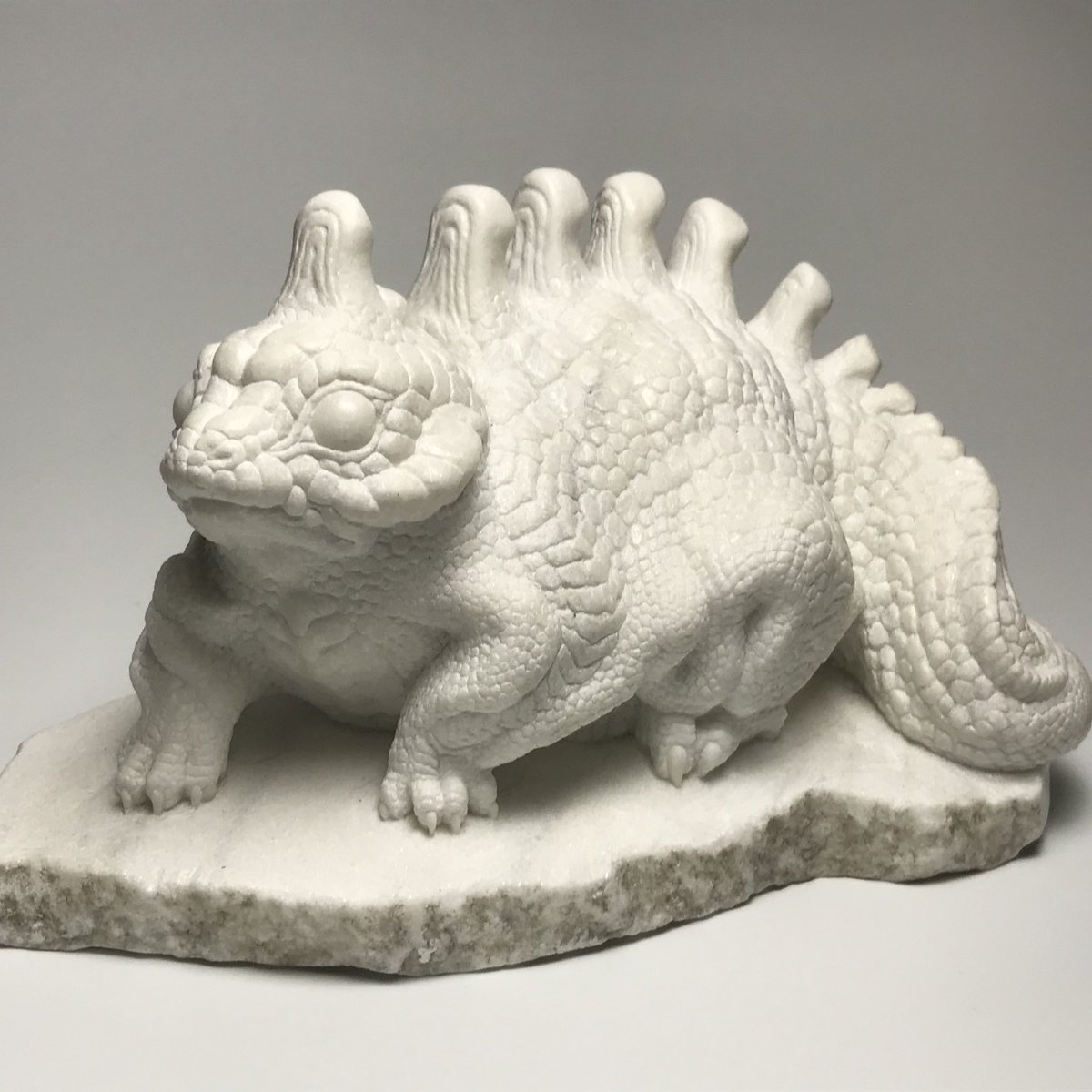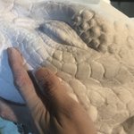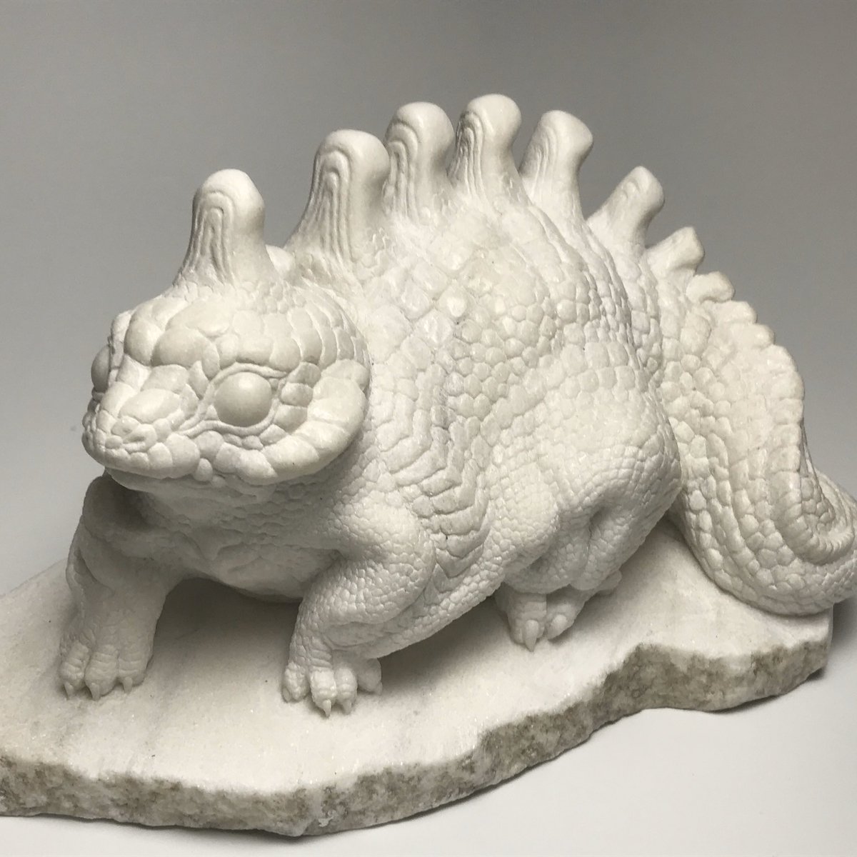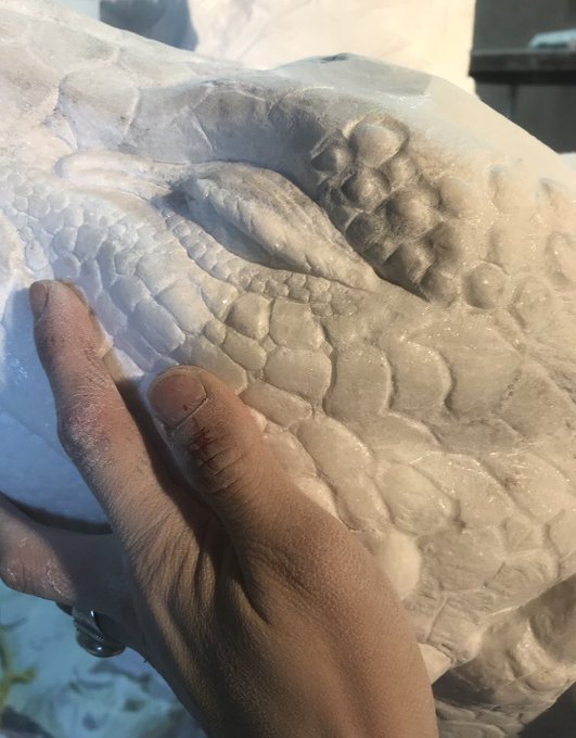 #自分が創作で禁止されたら死亡するもの ひたすらウロコを彫ること。 意図したバランスなら表面を飾る事によってフォルムが損なわれる事はなくて、中身と外見はひとつながりなのだと思います。彫刻では割とタブーとされている表現ですが、自分にとっていちばんの取り組みでもあります。