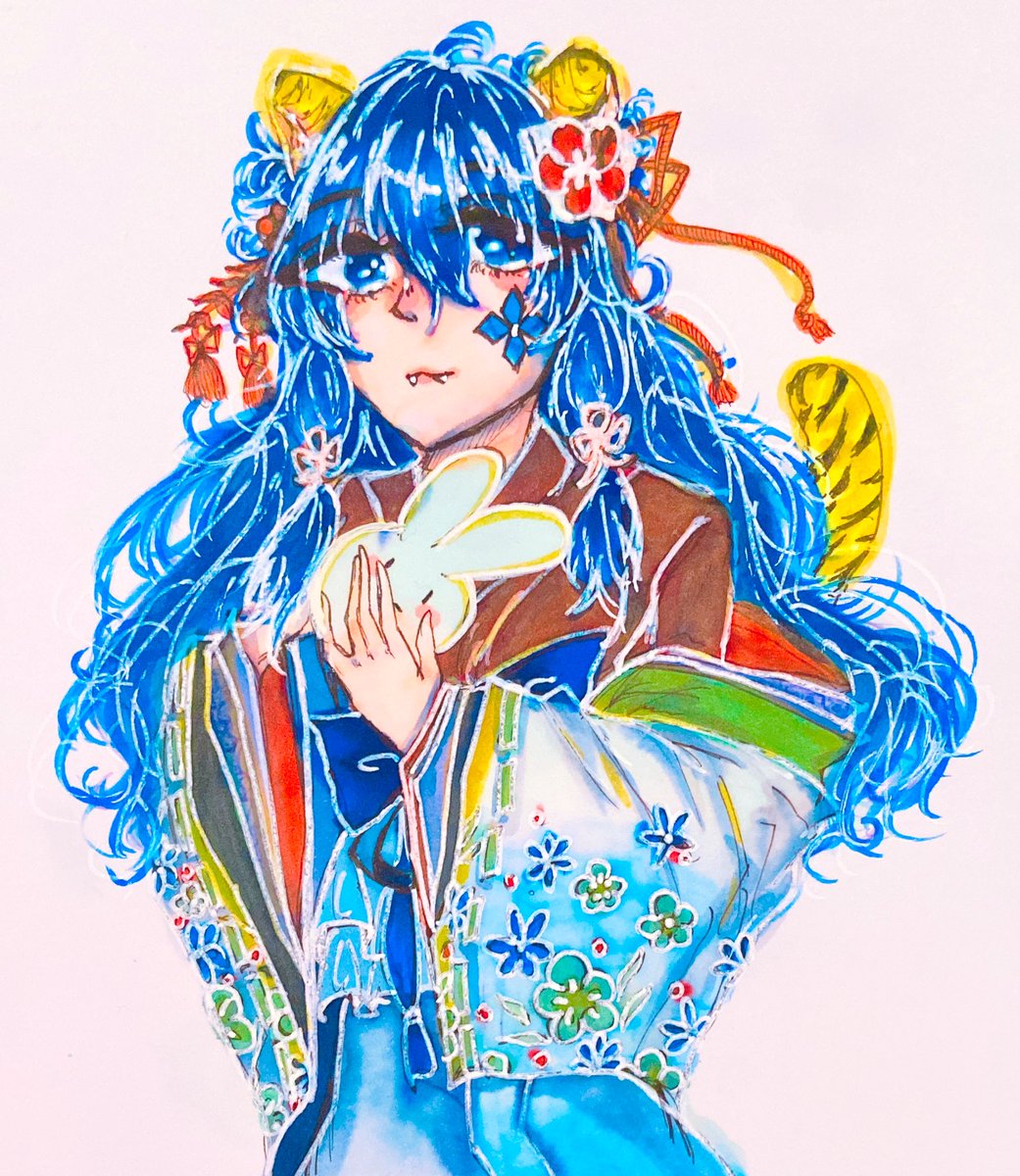 新年あけましておめでとうございます。 本年も宜しくお願い致します。 寅。🐯💙 #イラスト #イラスト初心者