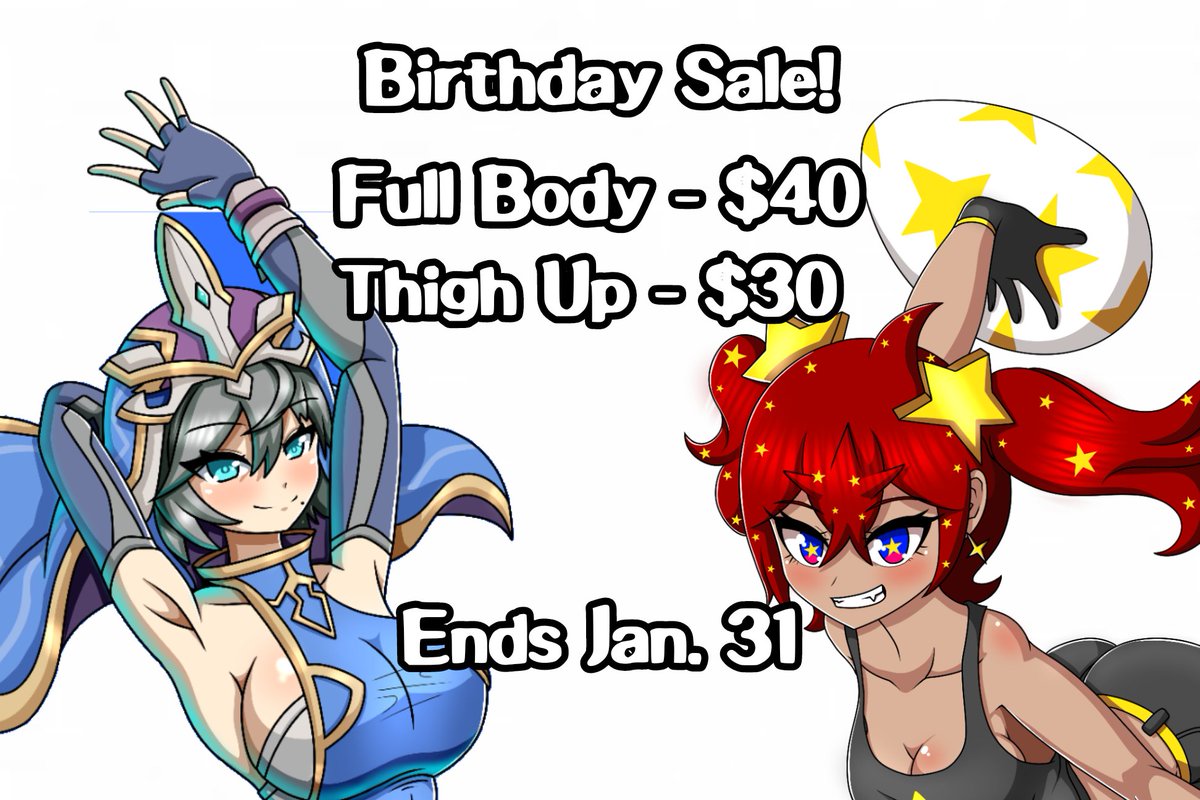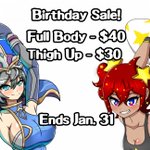 Happy New Year! My birthday is on the 28th of this month, so I'm opening up a sale! There's no theme this time, so any anime or video game character, OC, etc. is fine! Full body drawings are $40, thigh ups are $30! #ArtistOnTwitter