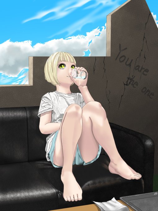 2 19 『あまいろ空』 #イラスト練習中 「もう一枚撮るからね」 「(かき氷溶けちゃう…)」 23/08/17 04:48