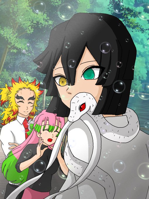小芭内~お誕生日おめでとう(* ´ ▽ ` *) 蜜璃ちゃんの髪型を変えてみました(*´-`)💦 #伊黒小芭内誕生祭2021 #伊黒小芭内生誕祭2021 #伊黒小芭内 #煉獄杏寿郎 #甘露寺蜜璃 #鬼滅の刃