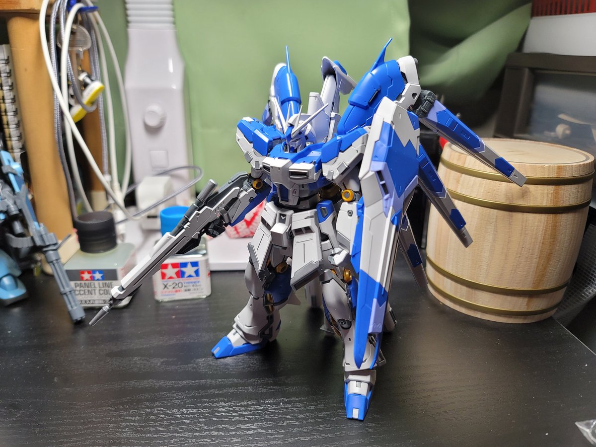 RG Hi-νガンダム完成した~✌️ 素組みでも十分満足できるほどのクオリティ✨✨ スミ入れはデカールゲットしてそれ貼るときに一緒にやりまする。 #ガンプラ #ガンプラ好きと繋がりたい #ガンプラの画像貼るとRTされると聞いて #ガンプラは自由だ