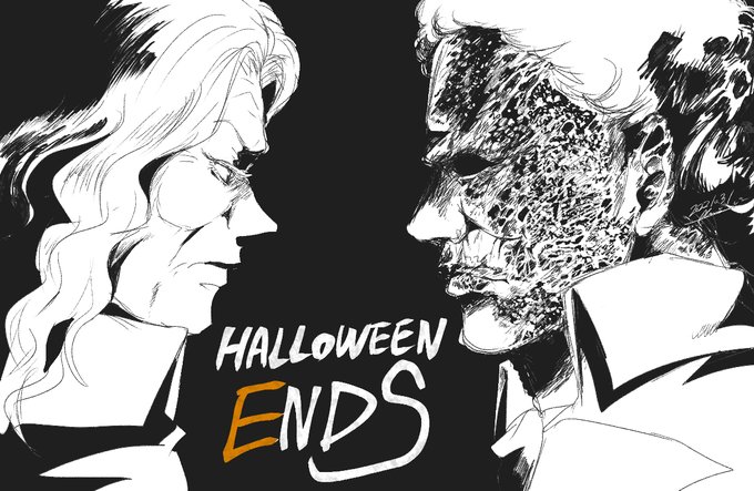 #ハロウィンTHEEND #さよならブギーマン #HALLOWEEN 本日「ハロウィンTHEEND」を観に行くのですが、ハロウィンシリーズを全く知らない旦那の為にハロウィンの(私なりの)簡潔な解説絵を押し付けてきました← (1/2)