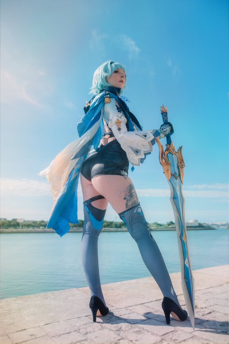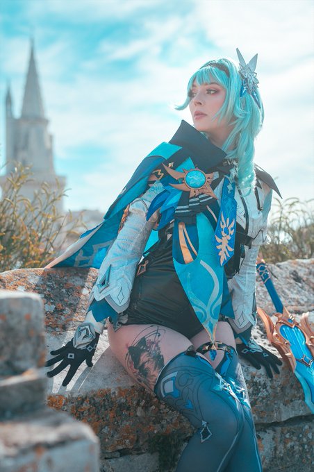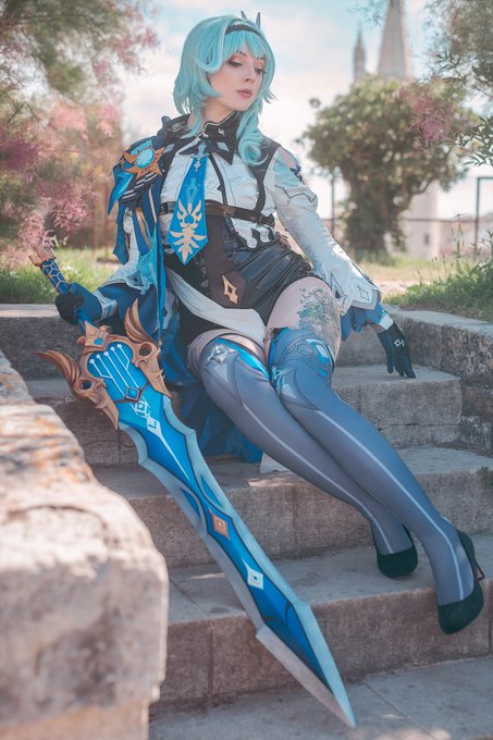 Let me share the first picture I edited of my Eula from Genshin Impact ! All accessories and sword made by me, 3d files available at @AinlinaShop ♥️ Pic by @Valentinpicture #eula #eulacosplay #Genshinlmpact @genshinimpactfr