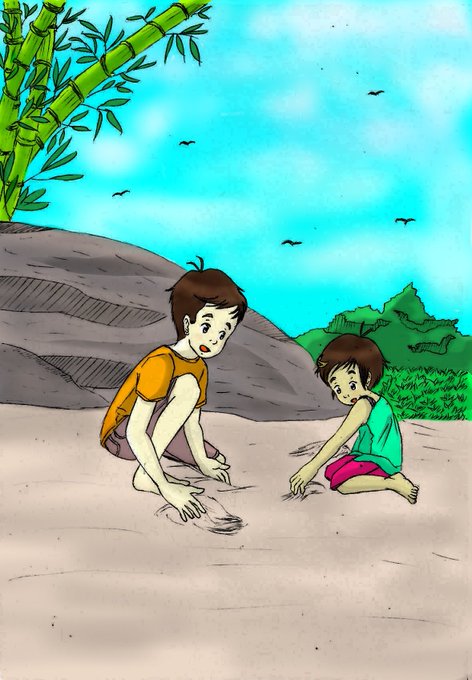 Painting of Koyo and Maya playing in the sand, one of the drawings for #inktober2020. #olderbrother #drawing #dessin #manga #littlesister #ibisPaintX #childrensbooks #anime #art #ArtistOnTwitter #DigitalArtist #Commission #sketch
