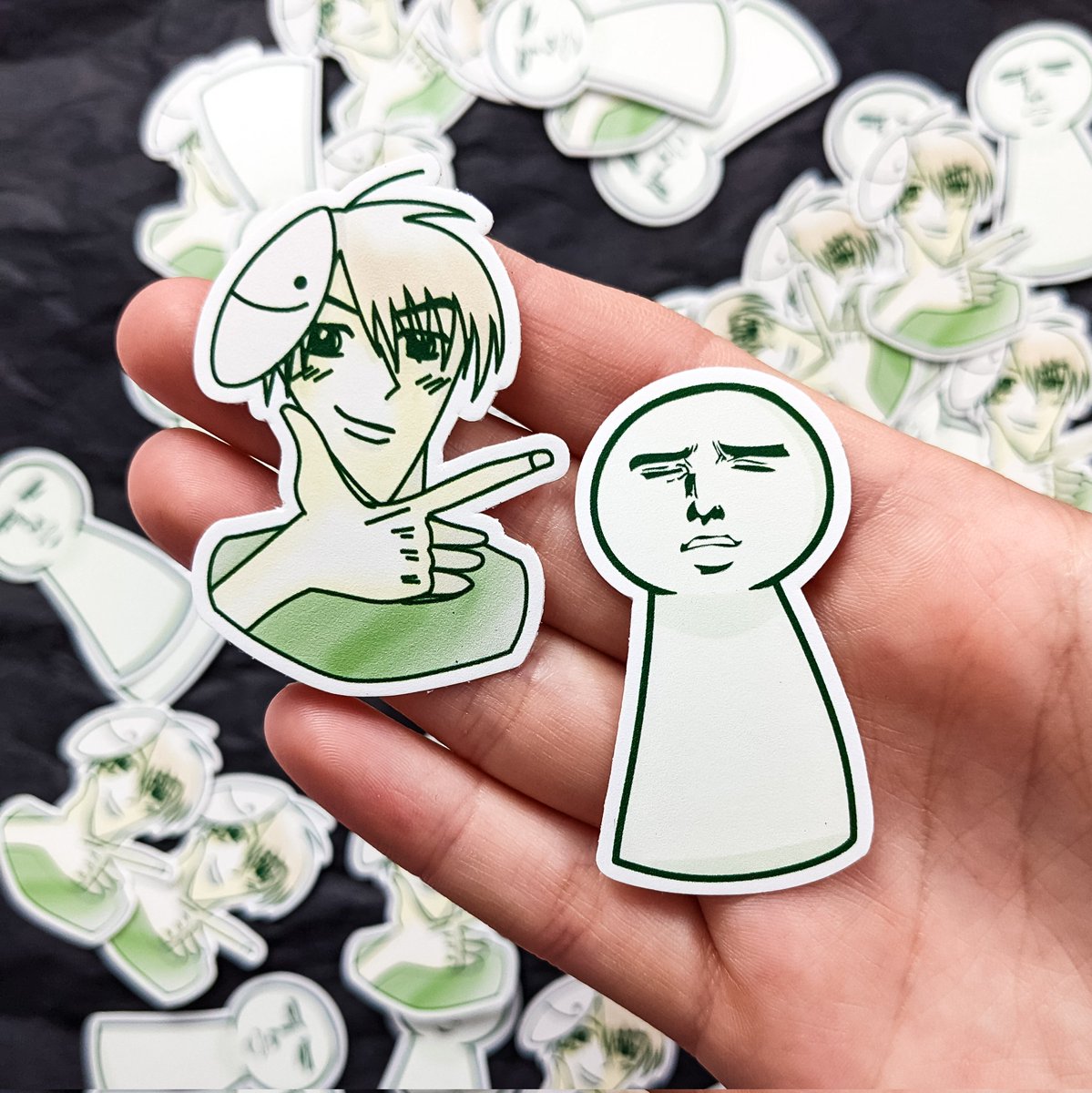 RT OR HE'LL COME AND EAT YOUR CAT/DOG Finally took the time to take a picture of the cursed Dream stickers. I will be sending the pre orders in about a week! I had to order some extras so some will be available in my sh0p eventually 💕 . @Dream__Fanart #dreamfanart