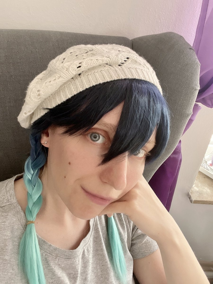 Just a very quick cosplay test without make up (just a little filter). Just want to know how it looks. Please forgive me for the poor test 🙈 The Cider sadly has to wait till evening 🙈 #venti #barbatos #GenshinImpact #cosplay #venticosplay #justapoortest #lovemycider