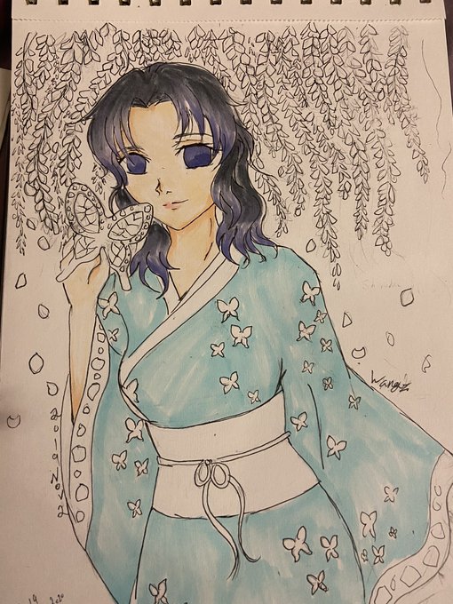 Current wip Old sketch of November 2019😅 coloring it now #shinobu #kny #kimetsunoyaibafanart #wip #sketchbook #traditional_day