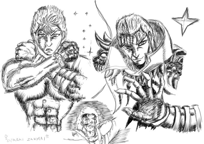#イラスト #illust #模写 #絵 #落ち描き #落書き #rkgk #練習 #北斗の拳 サウザーとケンシロウとシュウ