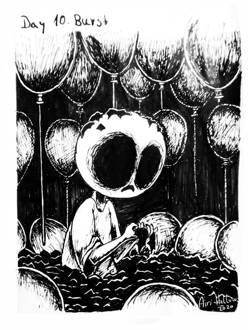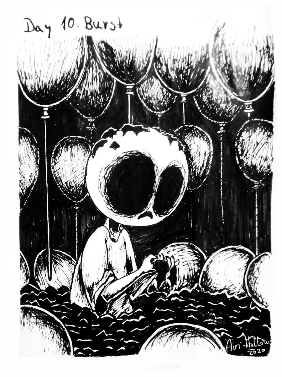 #Inktober Day 10 - Burst "Balloons bursts one by one." 🎈💥 😱 #inktober2020 #inktober2020day10 #AiriHollowsArt