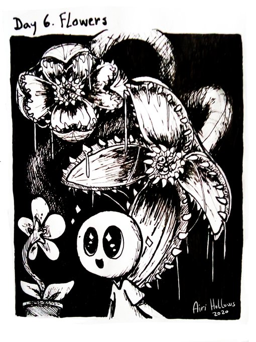 #Inktober Day 6 - Flowers 🌺🌷🌷 "Hello pretty flower. 😃" #inktober2020 #inktober2020day6 #AiriHollowsArt