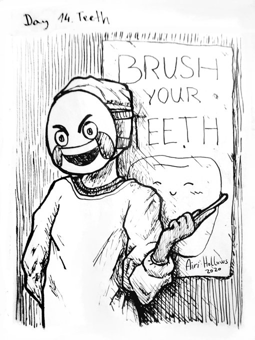 #Inktober Day 14 - Teeth 😬 Even in my age, I still feel uneasy whenever I have to see the dentist. Bad childhood experience 😓🐁 #inktober2020 #inktober2020day14 #AiriHollowsArt