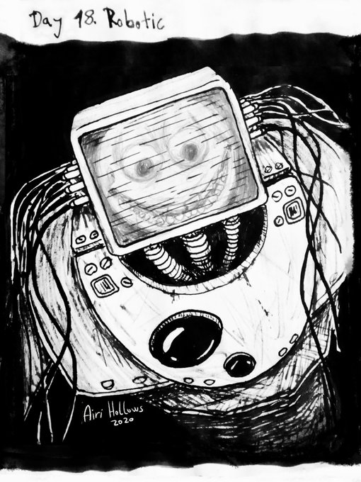 #Inktober Day 18 - Robotic 🤖 Another creation which gonna haunt my dreams. 😬 🐁 #inktober2020 #inktober2020day18 #AiriHollowsArt #robotic