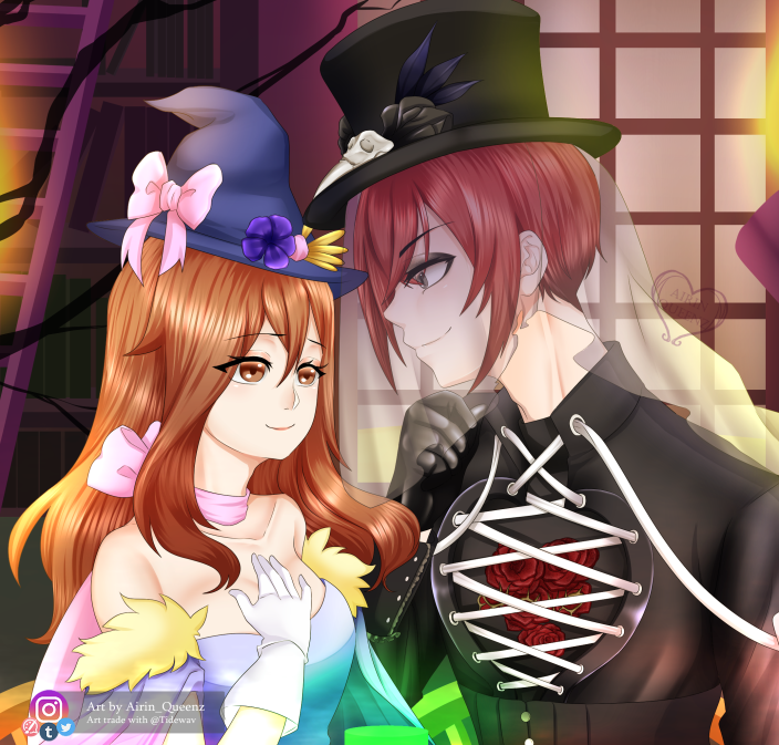 [Hallowen Art trade with Tidewav on instagram] Oc, Gloria with Riddle Roseheart from Twisted Wonderland. #twstプラス #twstoc #TwistedWonderland