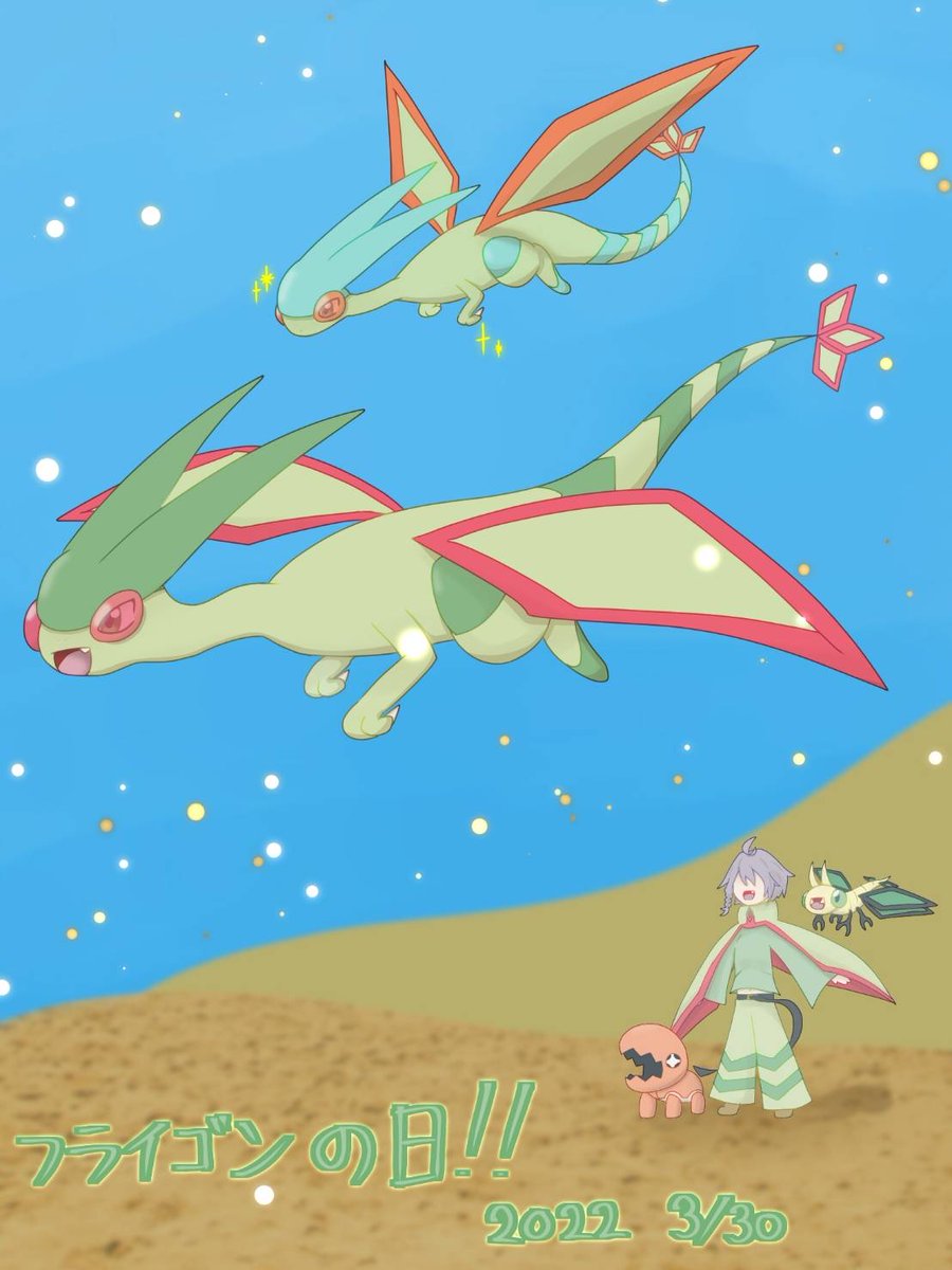 8 47 #フライゴンの日 #ポケモンと生活 去年は準備不足で過去絵だったけど、今年は入念に一ヶ月前から描いてたぜ!!! 好きだよ〜 おめでとう🎉 22/03/30 00:00