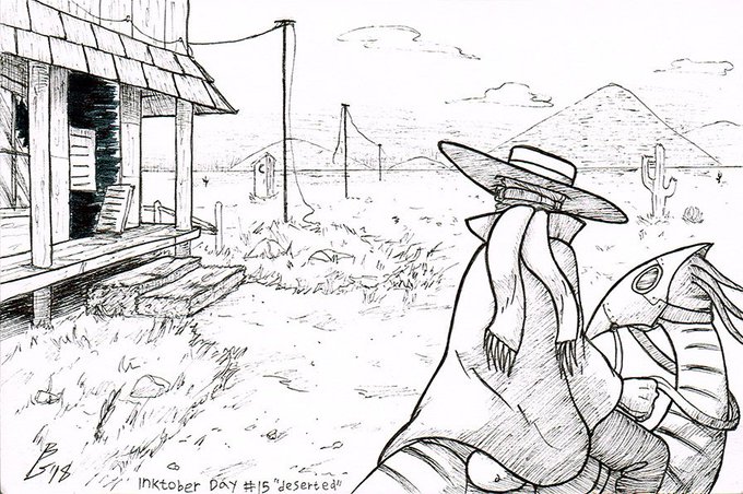 Inktober - Day 15, "Deserted" #inktober #inktober2018 #inktober18 #inktoberday15 #art #artistsontwitter #ArtistOnTwitter