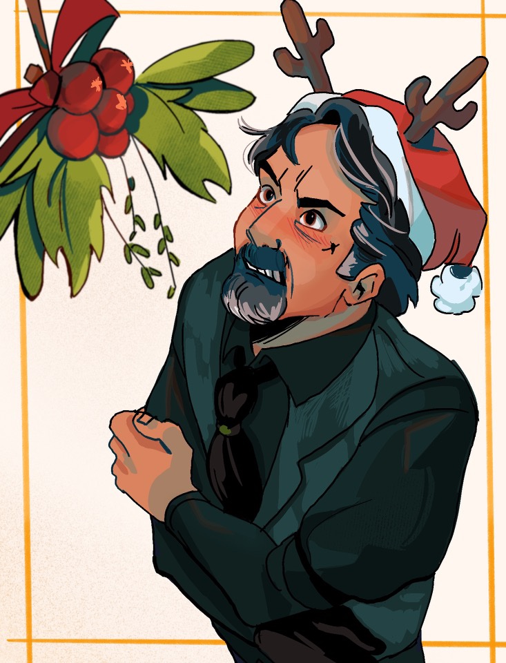 Have a happy fockin’ holiday! Whose under the mistletoe with Izzy👀? #izzyhands #OFMDfanart #happyholidays